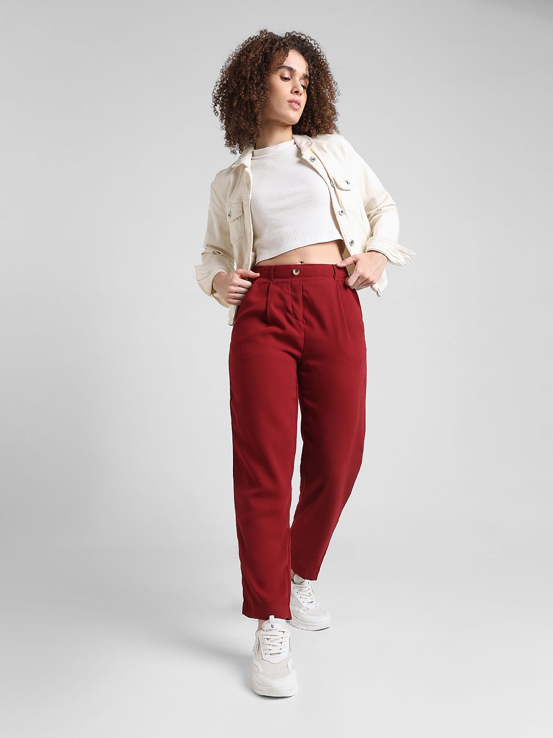 Red High Rise Cigarette Fit Pants