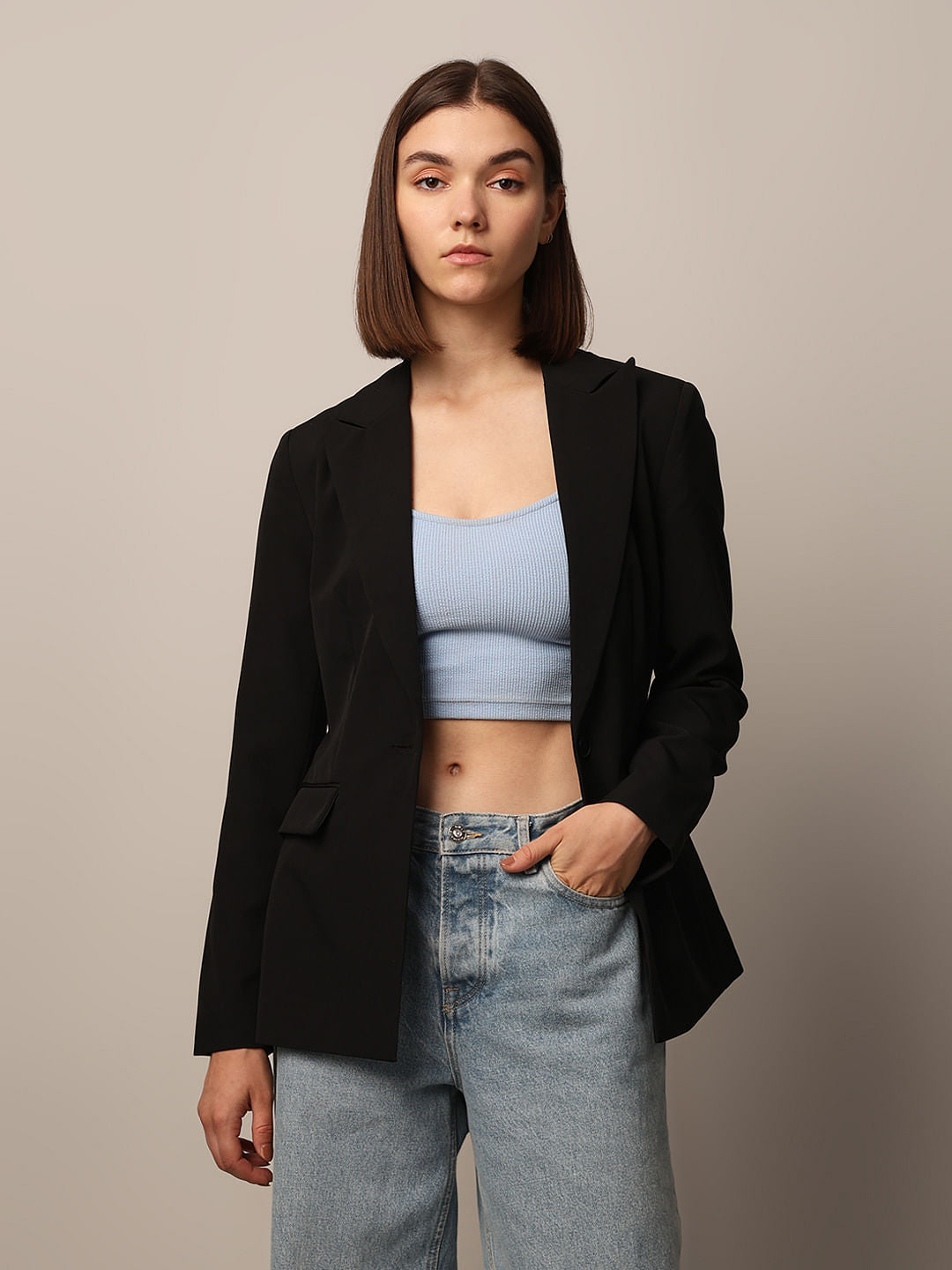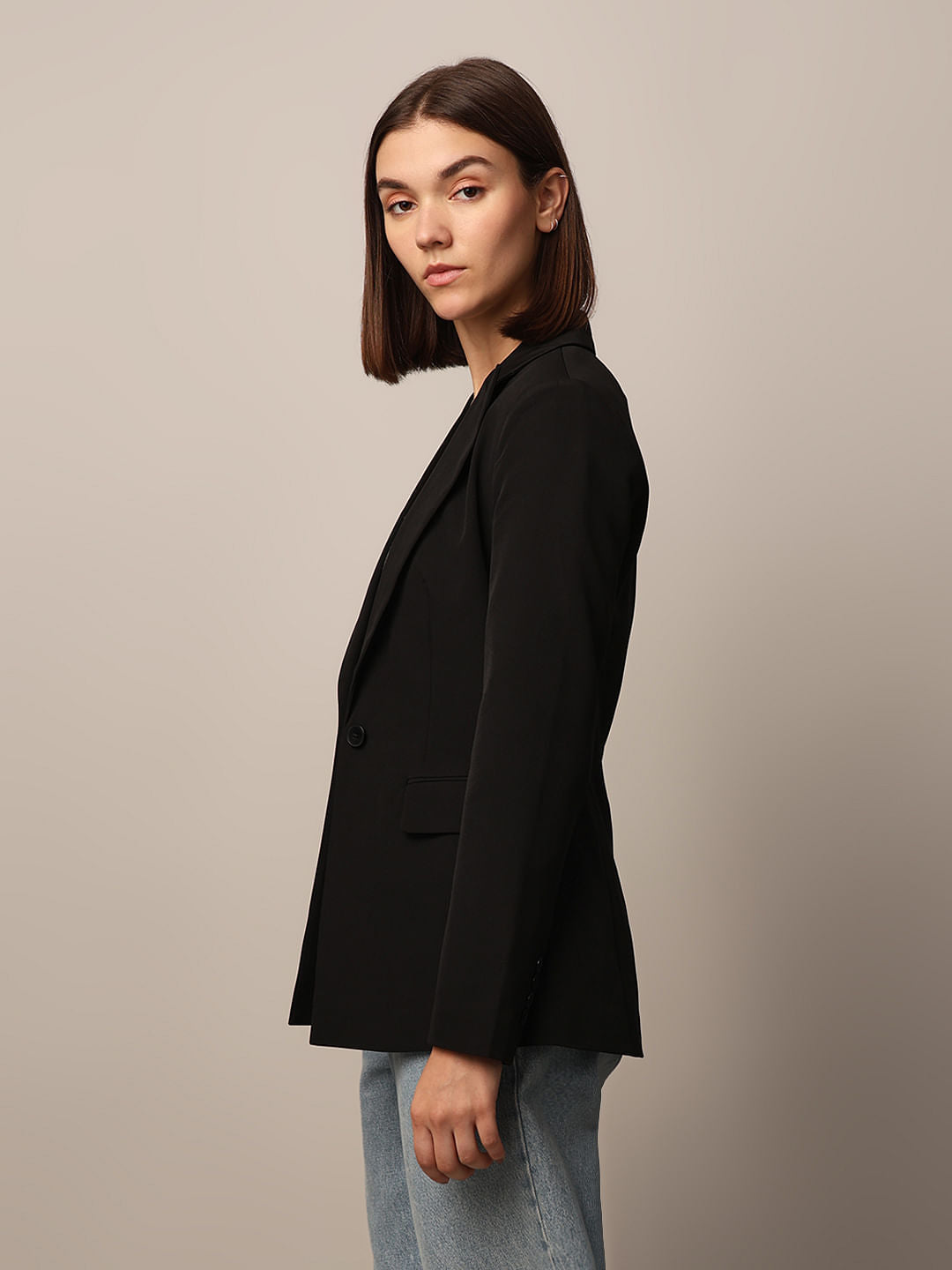 Elevate Your Wardrobe With This Chic Single-Breasted Blazer! Crafted From Woven Fabric, It Features Sleek Notch Lapels And A Single Button Closure That&Rsquo;S Perfect For Those Polished Moments. Shoulder Pads And Long Sleeves With A Stylish Slit And Button At The Cuffs Add A Touch Of Sophistication, While Jetted Front Pockets With Flaps Keep Things Practical And Trendy. A Single Back Vent Ensures A Flattering Fit, And The Lining Adds A Luxe Touch. This Blazer Is Your Go-To For Effortlessly Transforming Any Outfit From Casual To Classy. Pair It With High-Waisted Jeans And A Tee For A Laid-Back Look Or Throw It Over A Dress For A Refined Finish.