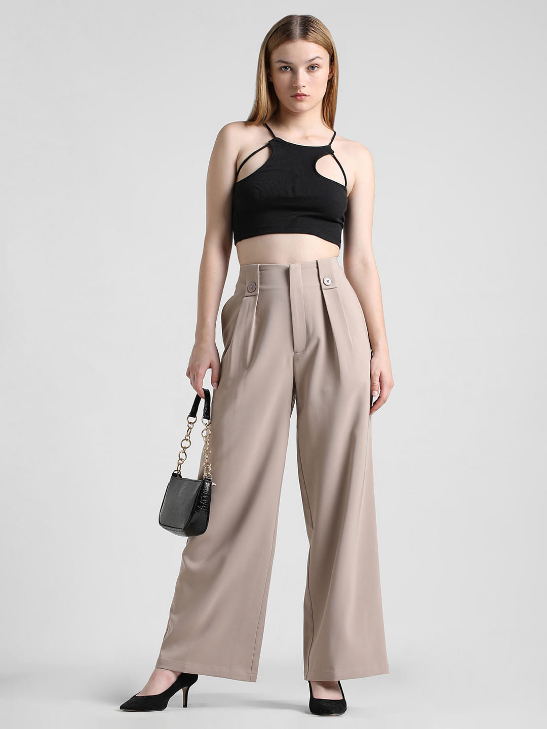 These Stylish Tailored Pants From Only Are A Perfect Addition To Your Wardrobe. Made Of A Solid Woven Fabric With A High Waist, They Feature Waistband Loops With A Button, Zip Fly And Button Closure. Relaxed Fit With Diagonal Side Pockets And Wide Legs With Pleats At The Top And Creases Down The Front, These Trousers Will Make Any Outfit Look Smart And Chic. Style Them With A Fitted Blouse Tucked In And Classic Leather Pumps For An Elevated Office Look Or Dress Them Down With Sneakers And An Oversized T-Shirt For A Casual Weekend Ensemble.