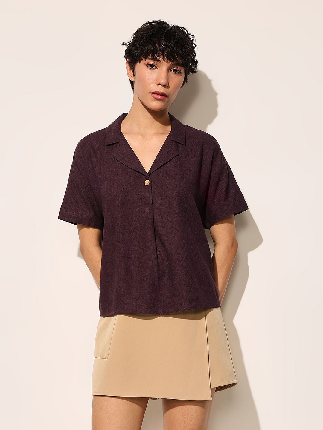 Easy, Breezy, And Effortlessly Cool! This Loose-Fit Linen-Blend Shirt Is Your Go-To For Laid-Back Days. Featuring A Classic Collar, Short Sleeves, And A Single Button Front, It&Rsquo;S All About That Effortless Vibe. Dress It Up Or Keep It Casual&Mdash;Either Way, You&Rsquo;Ll Be Serving Looks!