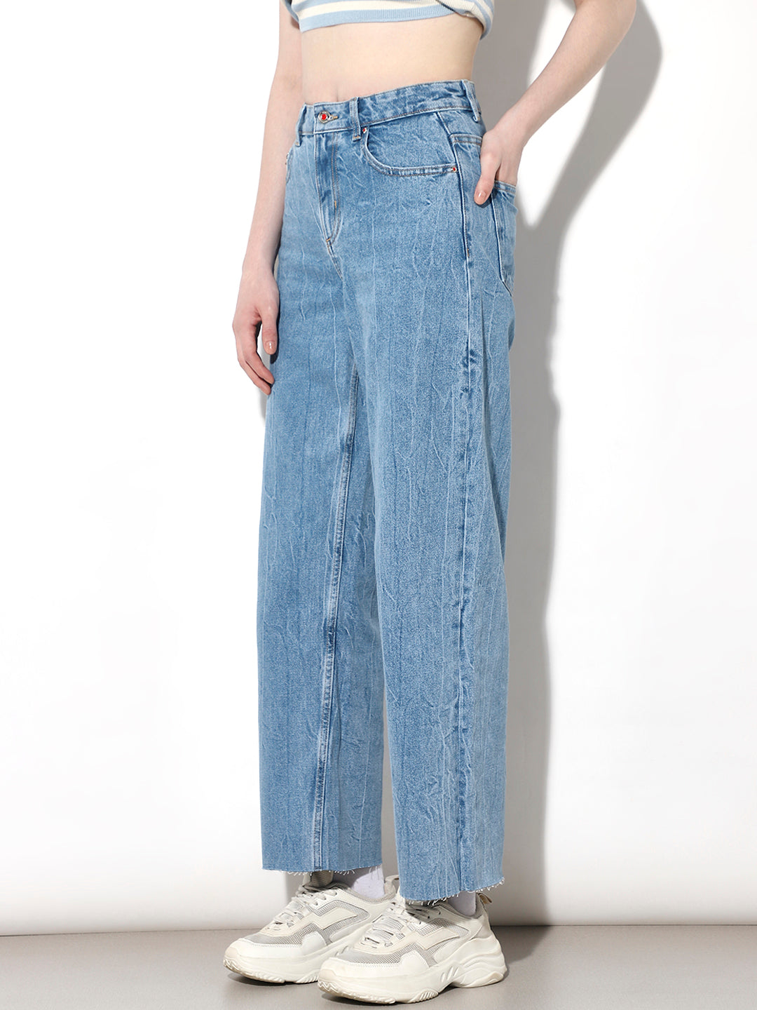Light Blue High Rise Straight Fit Jeans