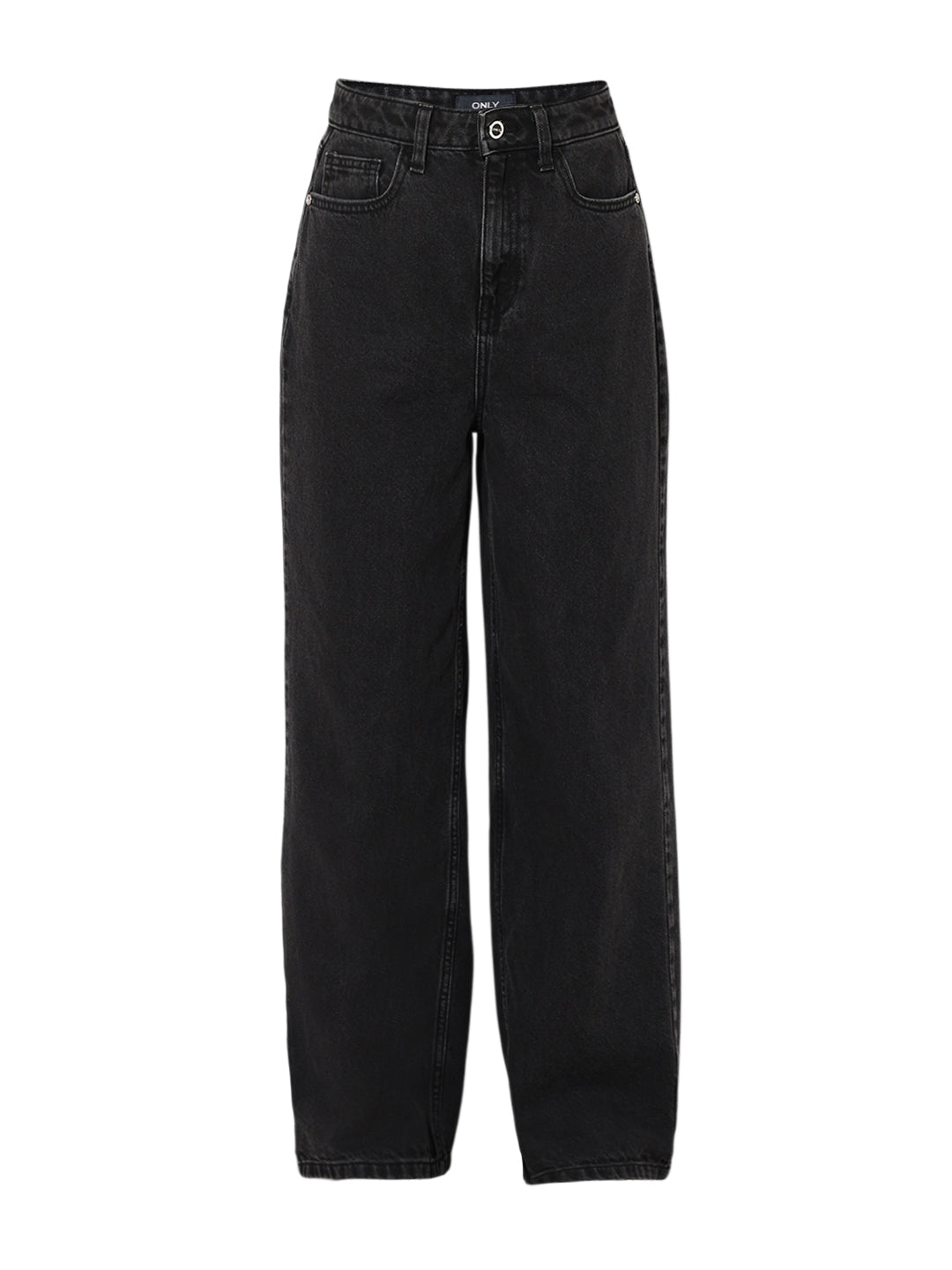 BLACK High Rise Straight Fit Jeans