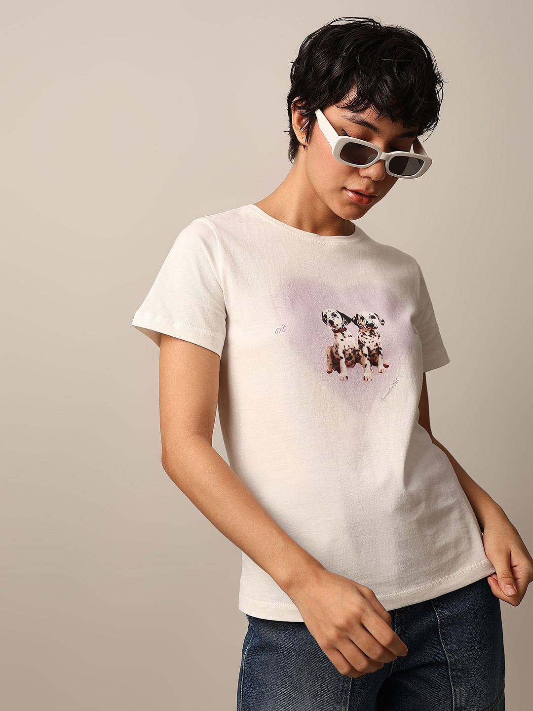 White Printed Cotton Oversized T-Shirt Sale price₹ 909 Regular price₹ 1,299 30% off