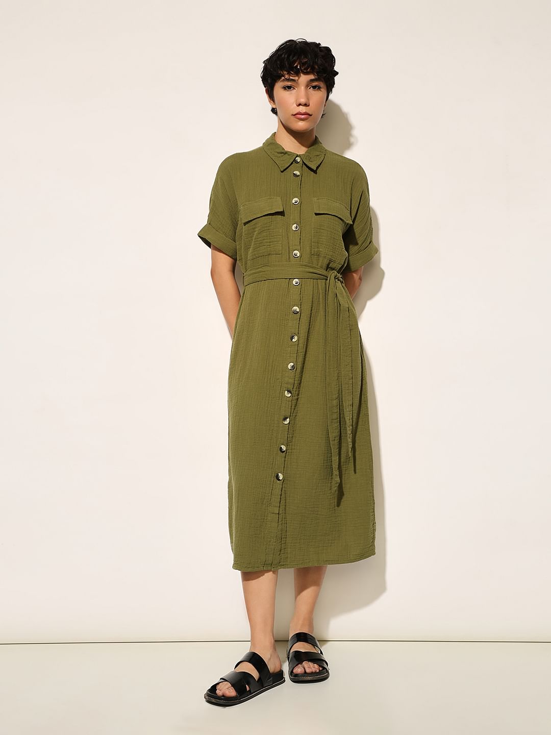 Green Belted Shirt Dress Sale price₹ 2,449 Regular price₹ 3,499 30% off
