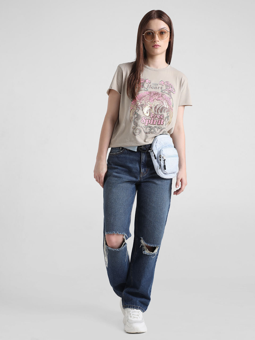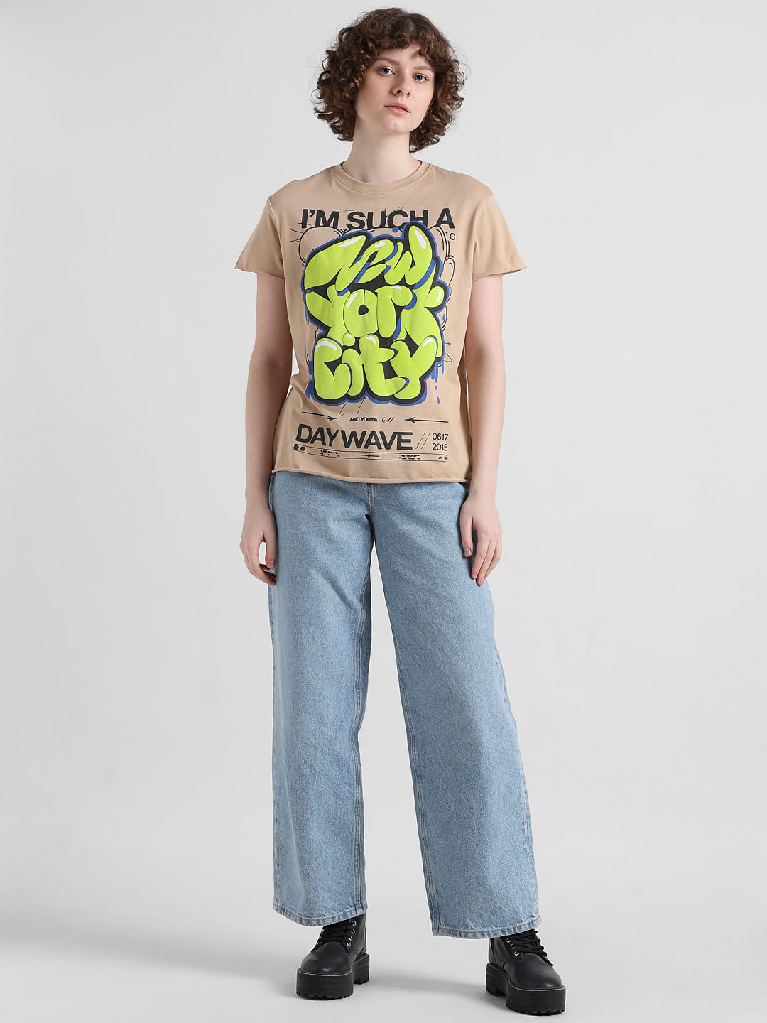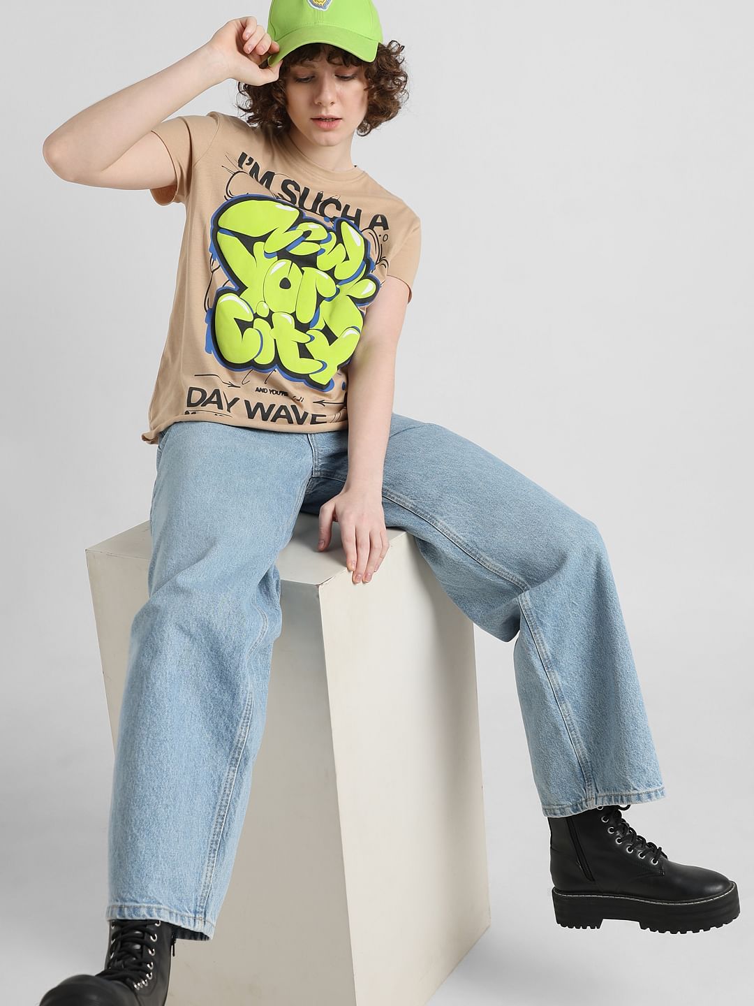 Beige Printed Boxy Fit T-Shirt Sale price₹ 549 Regular price₹ 999 45% off