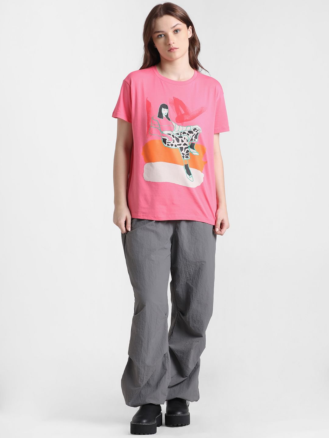 Pink Graphic Print Boxy T-Shirt Sale price₹ 750 Regular price₹ 1,499 50% off