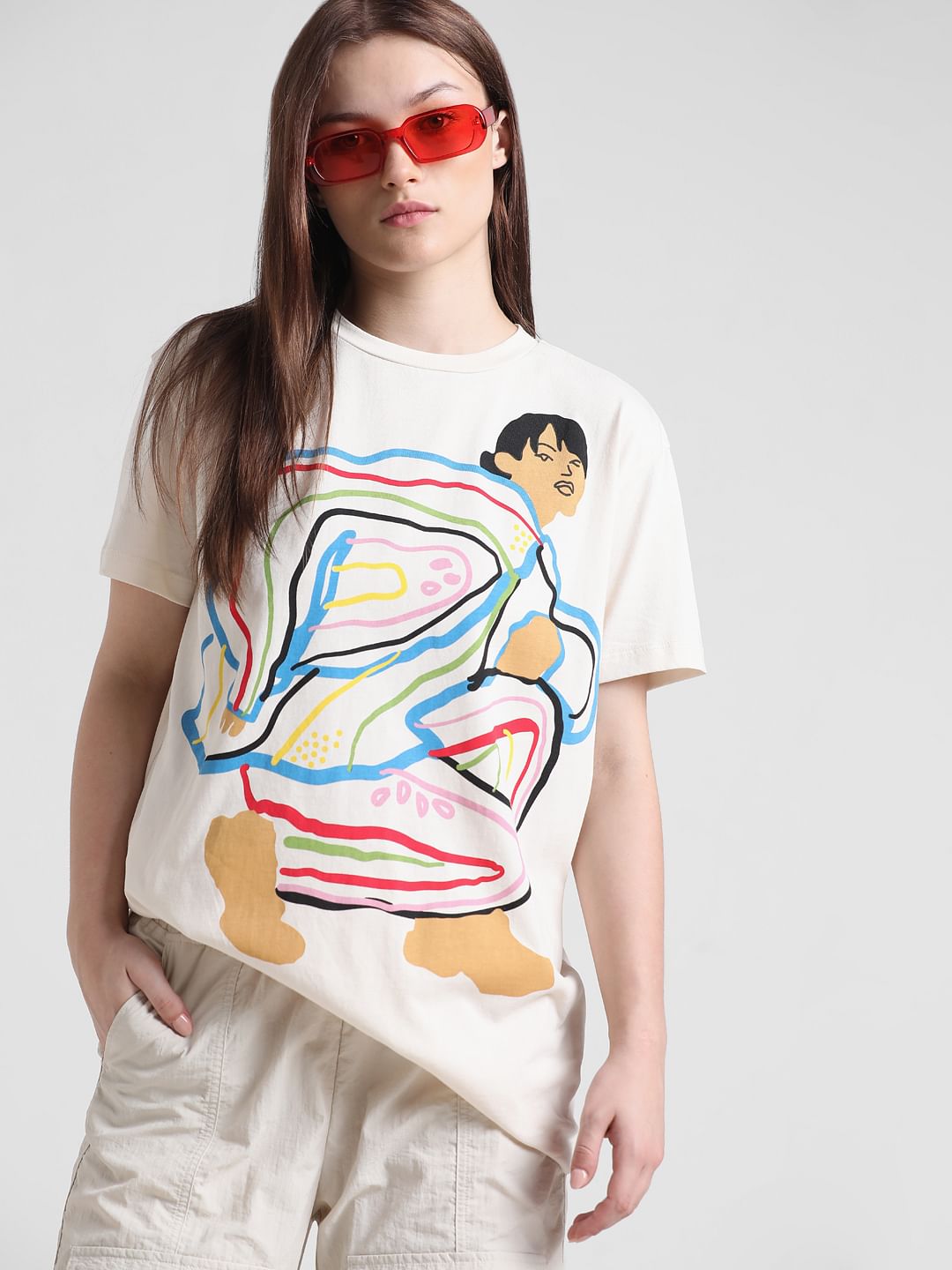 Beige Printed Boxy Fit T-Shirt Sale price₹ 650 Regular price₹ 1,299 50% off