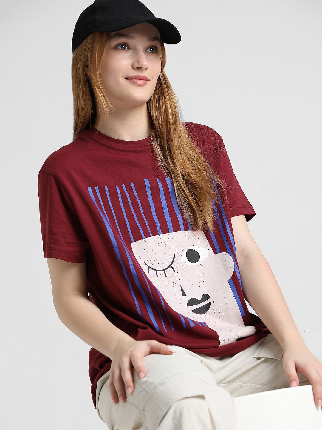 Maroon Graphic Print T-Shirt Sale price₹ 650 Regular price₹ 1,299 50% off