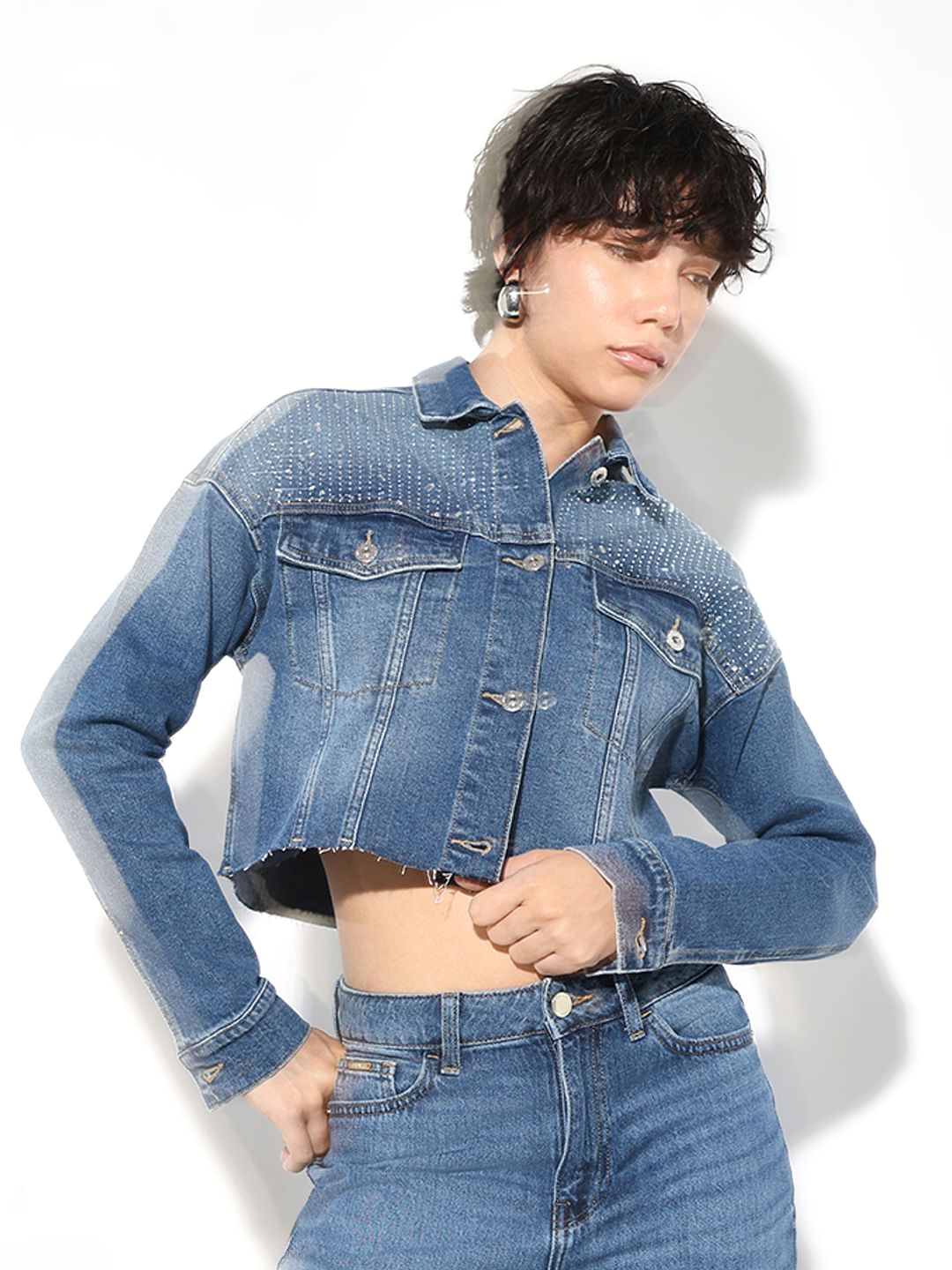Blue Rhinestone Detail Denim Jacket Sale price₹ 2,924 Regular price₹ 4,499 35% off