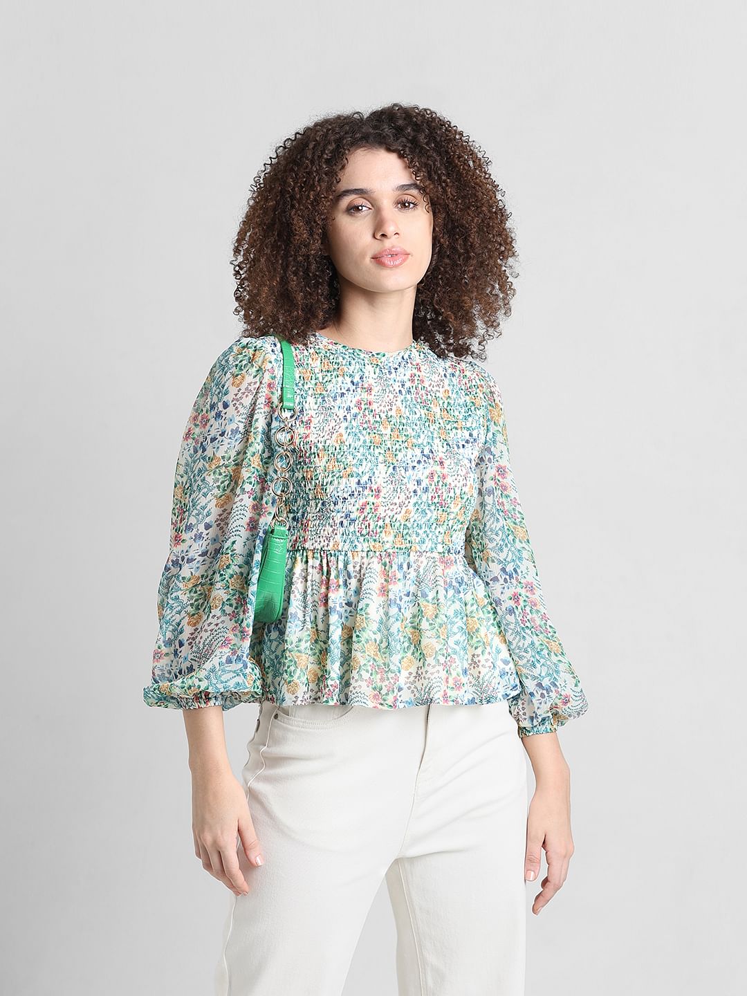 Blue Floral Print Smocked Top Sale price₹ 1,264 Regular price₹ 2,299 45% off