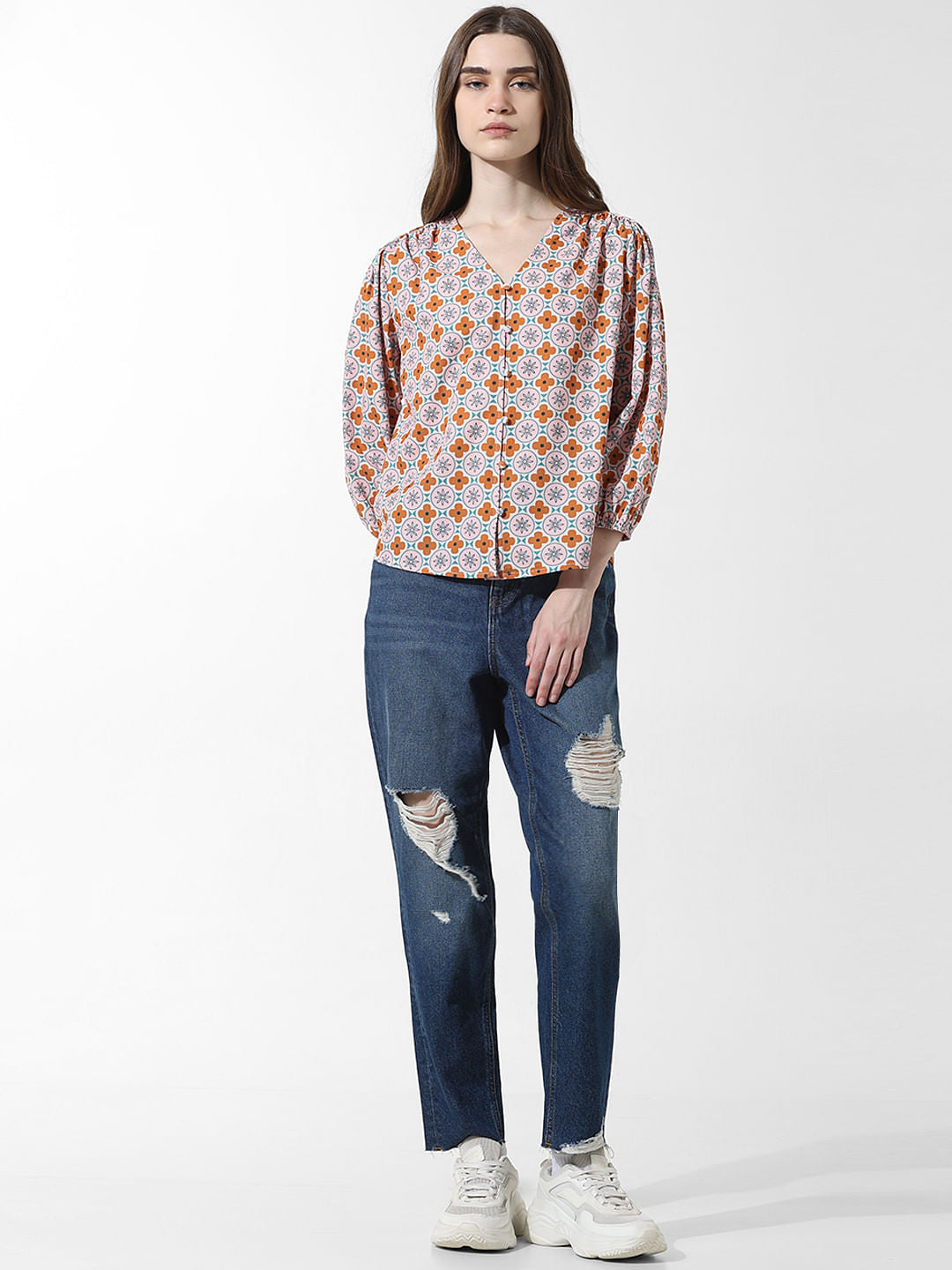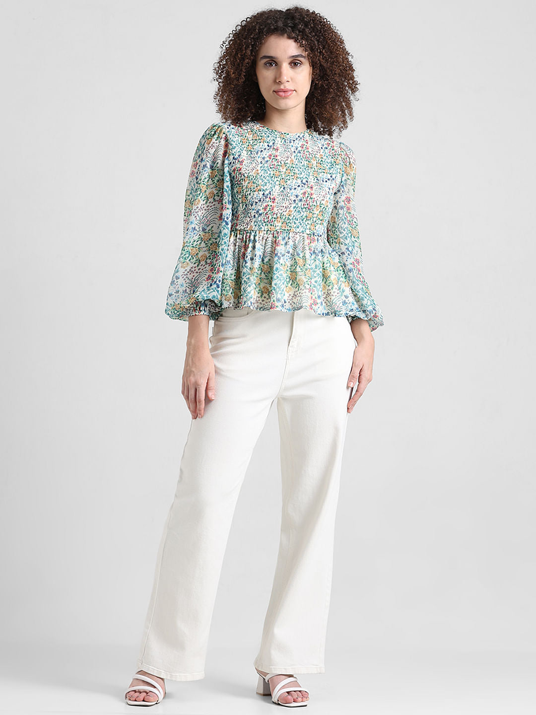 White Floral Print Smocked Top Sale price₹ 1,494 Regular price₹ 2,299 35% off