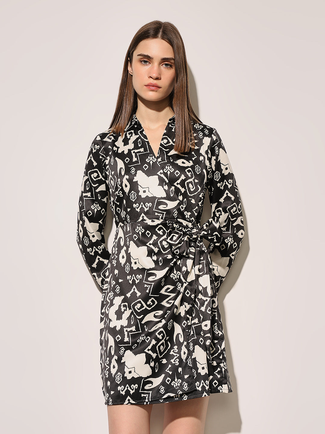 Black Printed Wrap Dress Sale price₹ 1,799 Regular price₹ 2,999 40% off