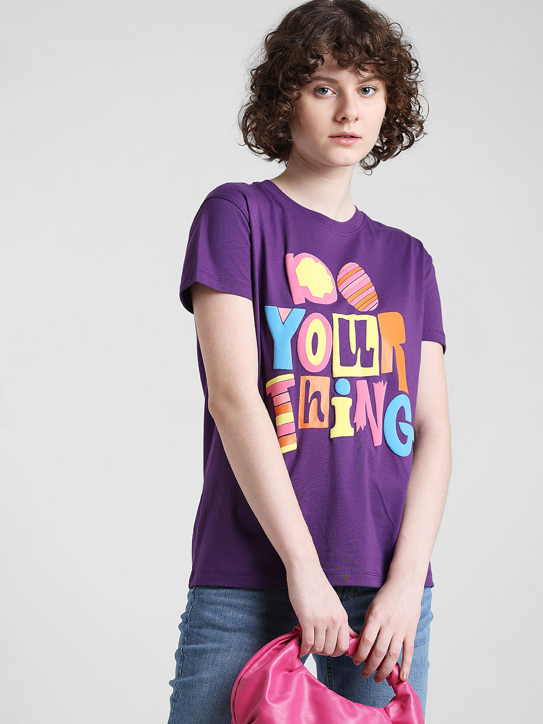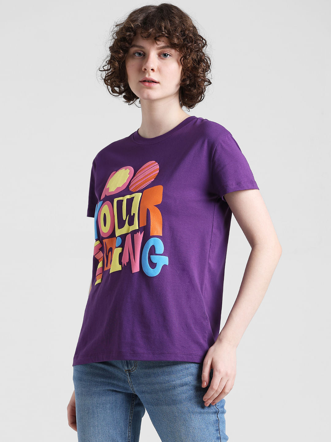 This Soft And Comfortable Cotton Tee From Only Is The Perfect Addition To Your Wardrobe. The Round Neckline And Short Sleeves Make It A Timeless Style Choice. It Features A Puff Printed Jersey, Giving It A Unique Look. Style It With High-Waisted Jeans And Sandals For An Effortless Summer Look, Or Layer It Under A Blazer For The Office.
