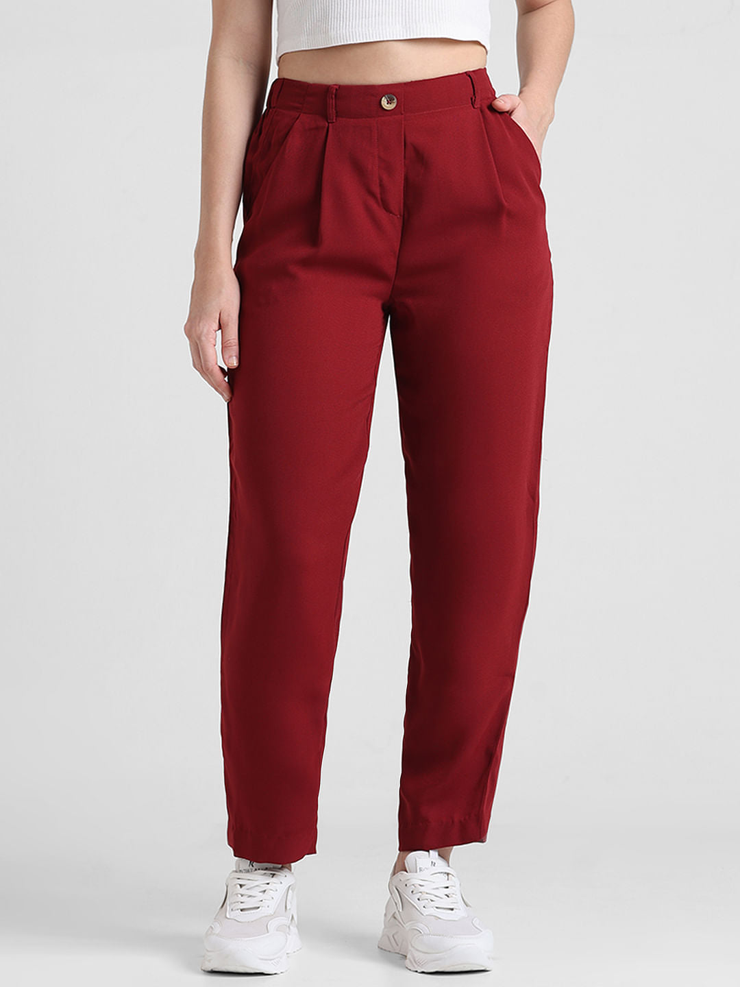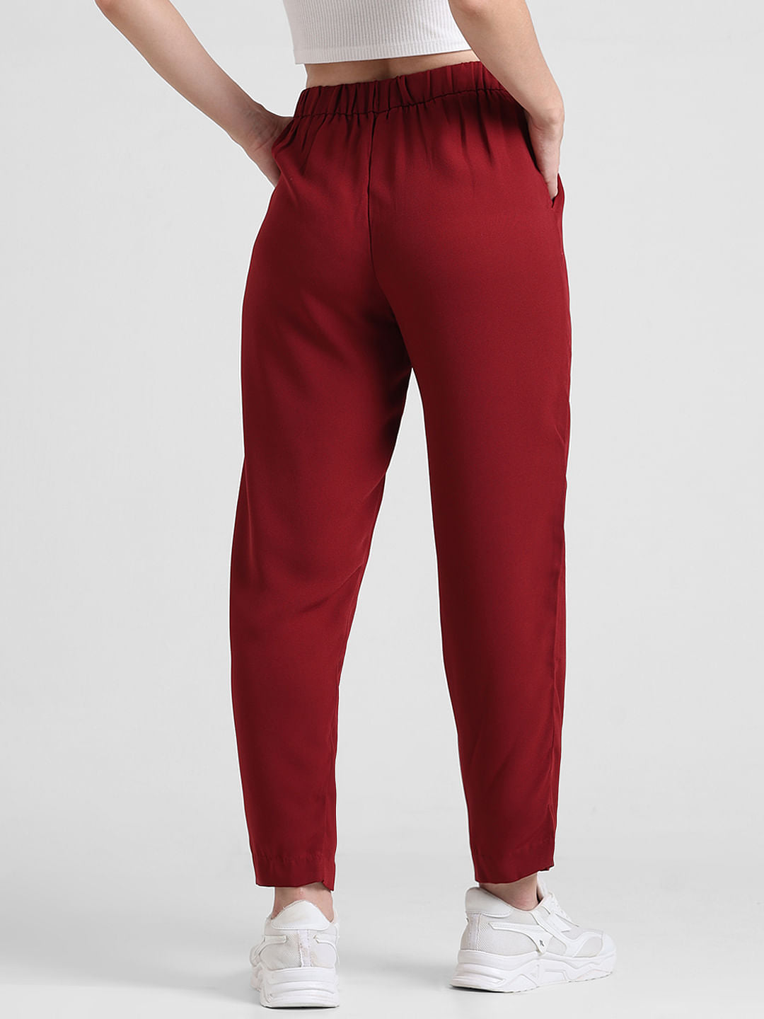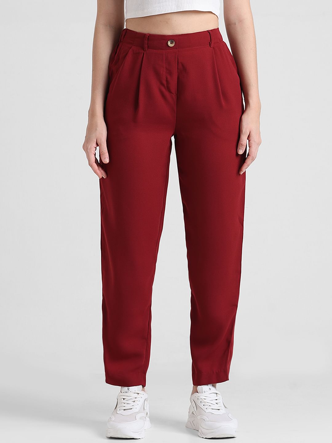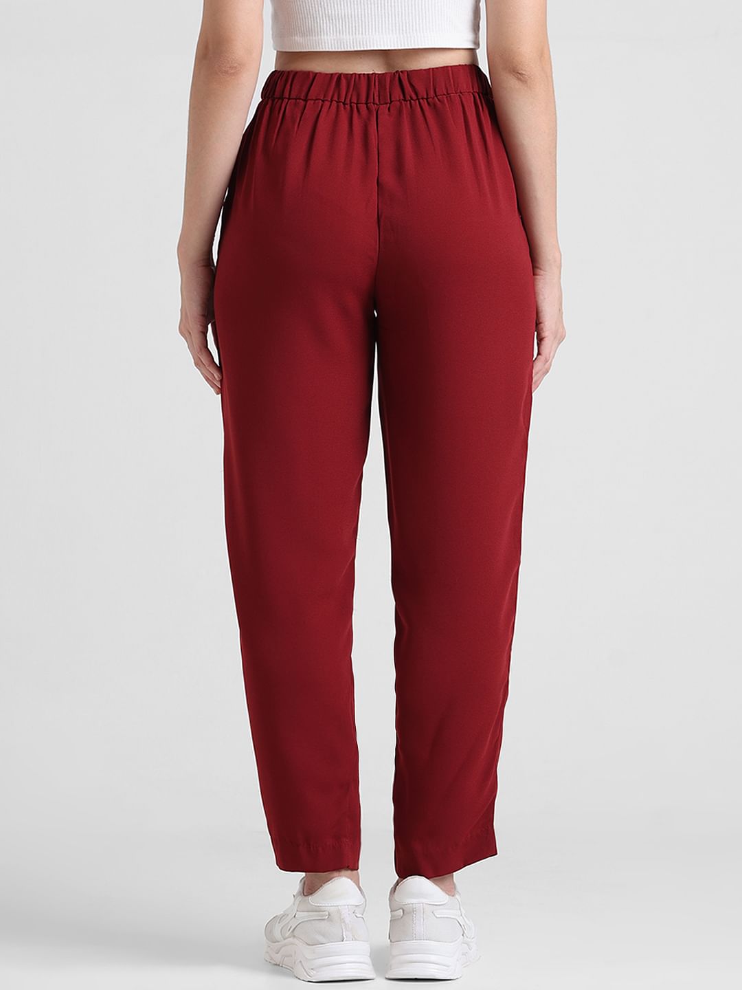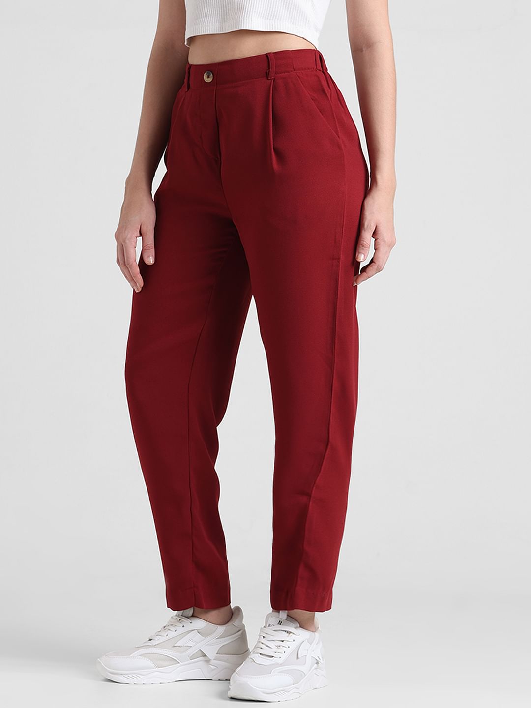 Red High Rise Cigarette Fit Pants