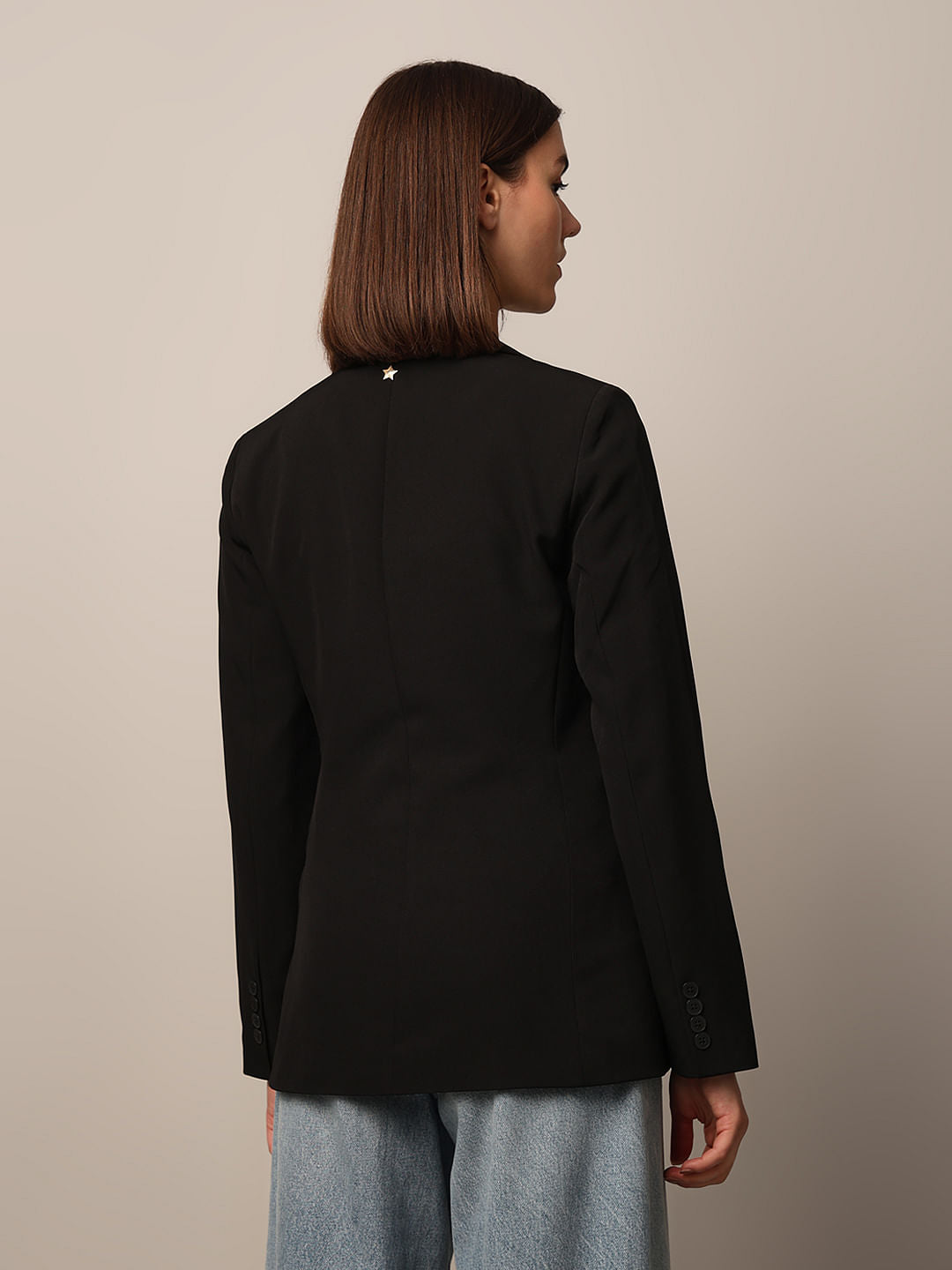 Elevate Your Wardrobe With This Chic Single-Breasted Blazer! Crafted From Woven Fabric, It Features Sleek Notch Lapels And A Single Button Closure That&Rsquo;S Perfect For Those Polished Moments. Shoulder Pads And Long Sleeves With A Stylish Slit And Button At The Cuffs Add A Touch Of Sophistication, While Jetted Front Pockets With Flaps Keep Things Practical And Trendy. A Single Back Vent Ensures A Flattering Fit, And The Lining Adds A Luxe Touch. This Blazer Is Your Go-To For Effortlessly Transforming Any Outfit From Casual To Classy. Pair It With High-Waisted Jeans And A Tee For A Laid-Back Look Or Throw It Over A Dress For A Refined Finish.