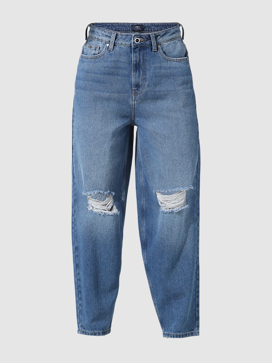 5-Pocket Jeans In Cotton Denim With A High Waist And Zip Fly With A Button, Distress Loose Fit With Tapered Legs.