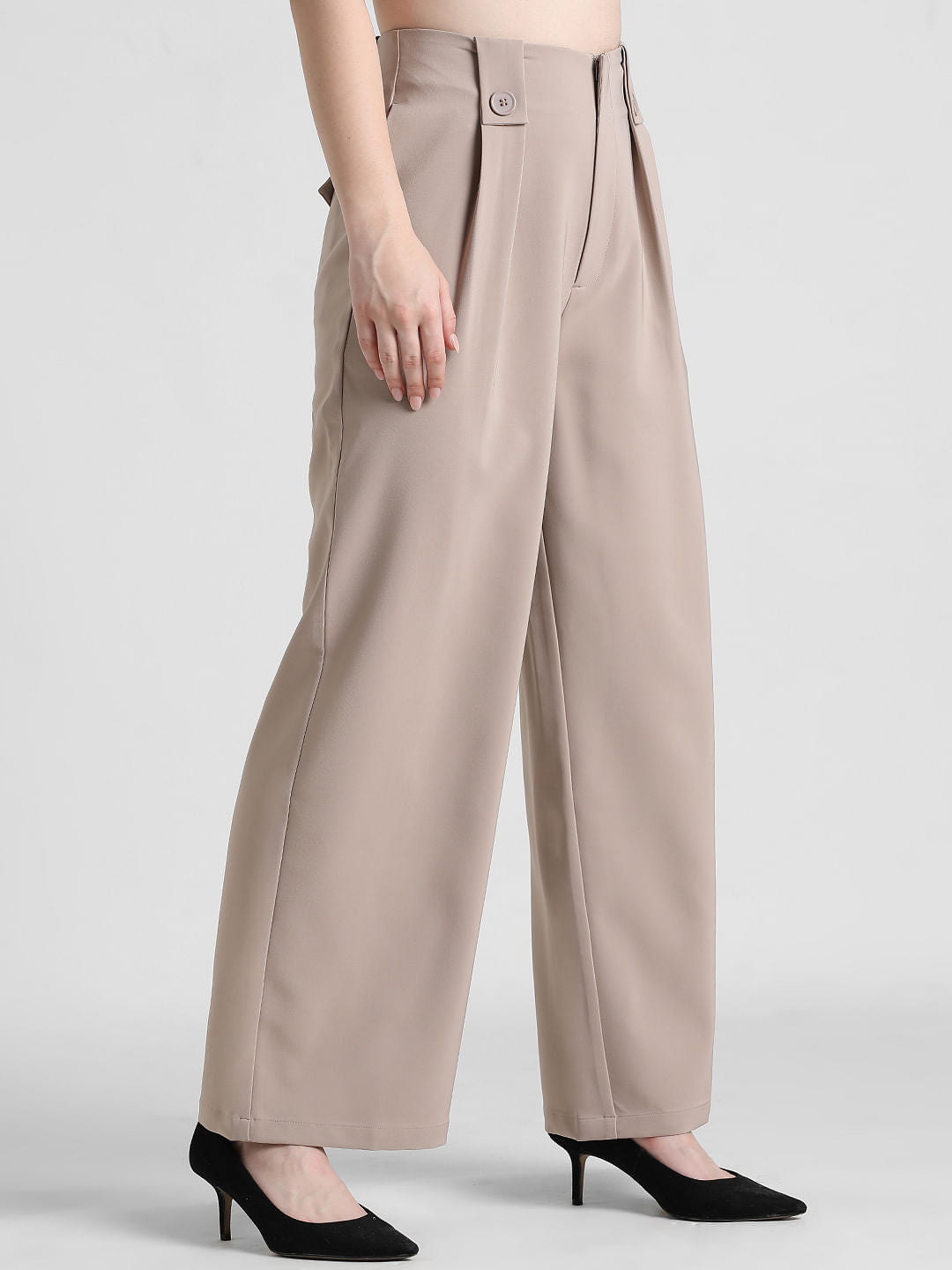 These Stylish Tailored Pants From Only Are A Perfect Addition To Your Wardrobe. Made Of A Solid Woven Fabric With A High Waist, They Feature Waistband Loops With A Button, Zip Fly And Button Closure. Relaxed Fit With Diagonal Side Pockets And Wide Legs With Pleats At The Top And Creases Down The Front, These Trousers Will Make Any Outfit Look Smart And Chic. Style Them With A Fitted Blouse Tucked In And Classic Leather Pumps For An Elevated Office Look Or Dress Them Down With Sneakers And An Oversized T-Shirt For A Casual Weekend Ensemble.