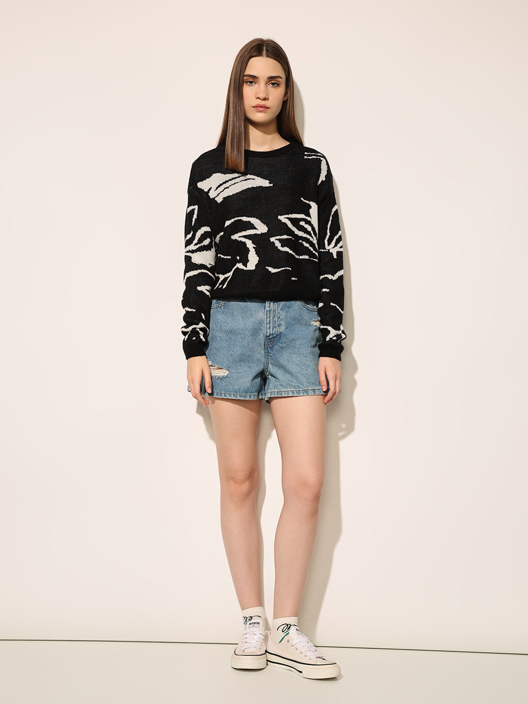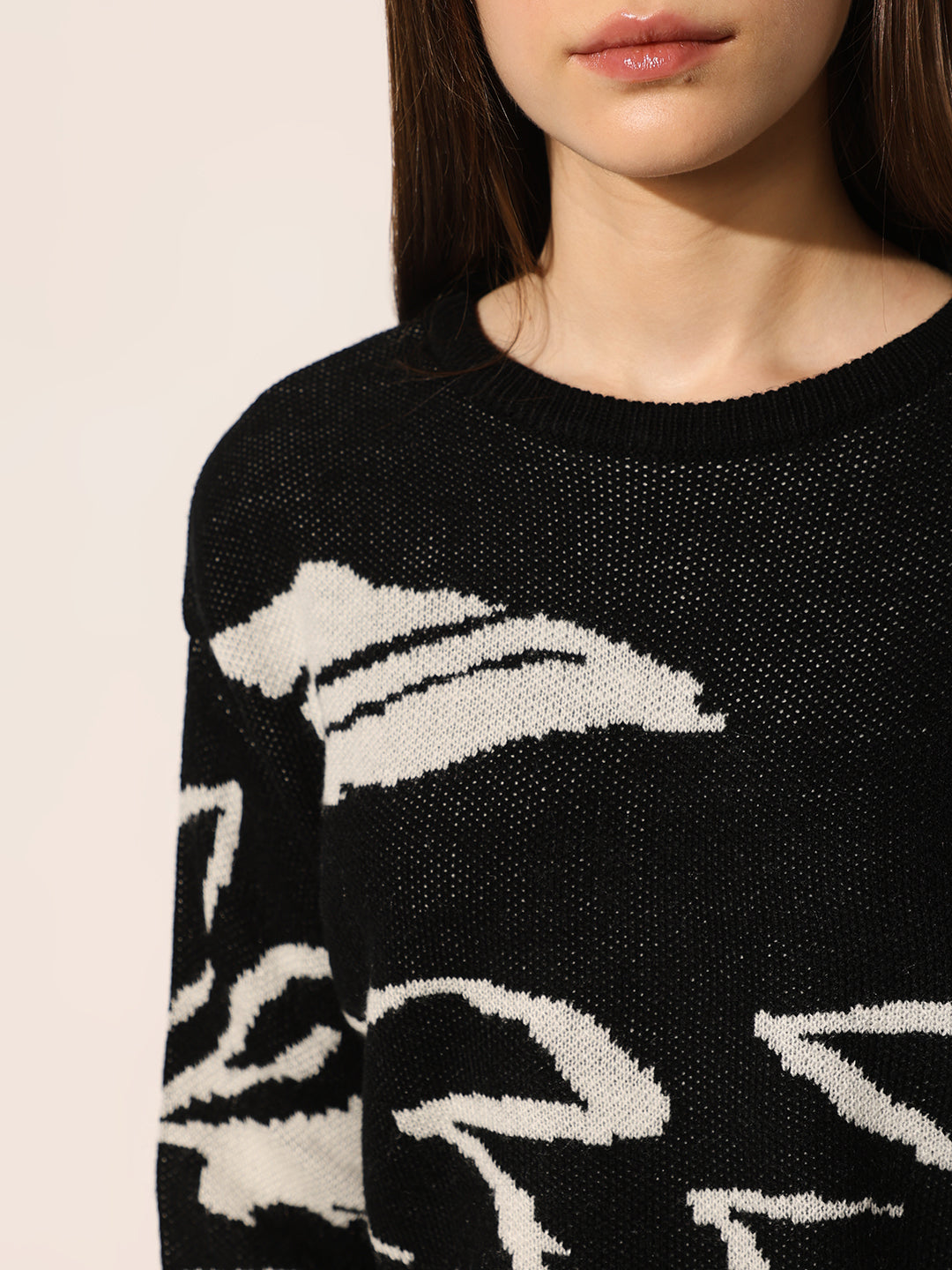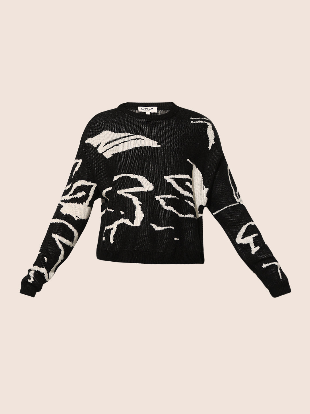 Meet your new fave womenswear top — a cozy jacquard knit pullover that’s soft, snuggly, and full of style. With a round neck, long sleeves, and playful ribbed details at the cuffs, hem, and neckline, it’s the perfect mix of comfy and cool. Rock the ONLY Black Printed Jacquard Knit Pullover and stay effortlessly chic!