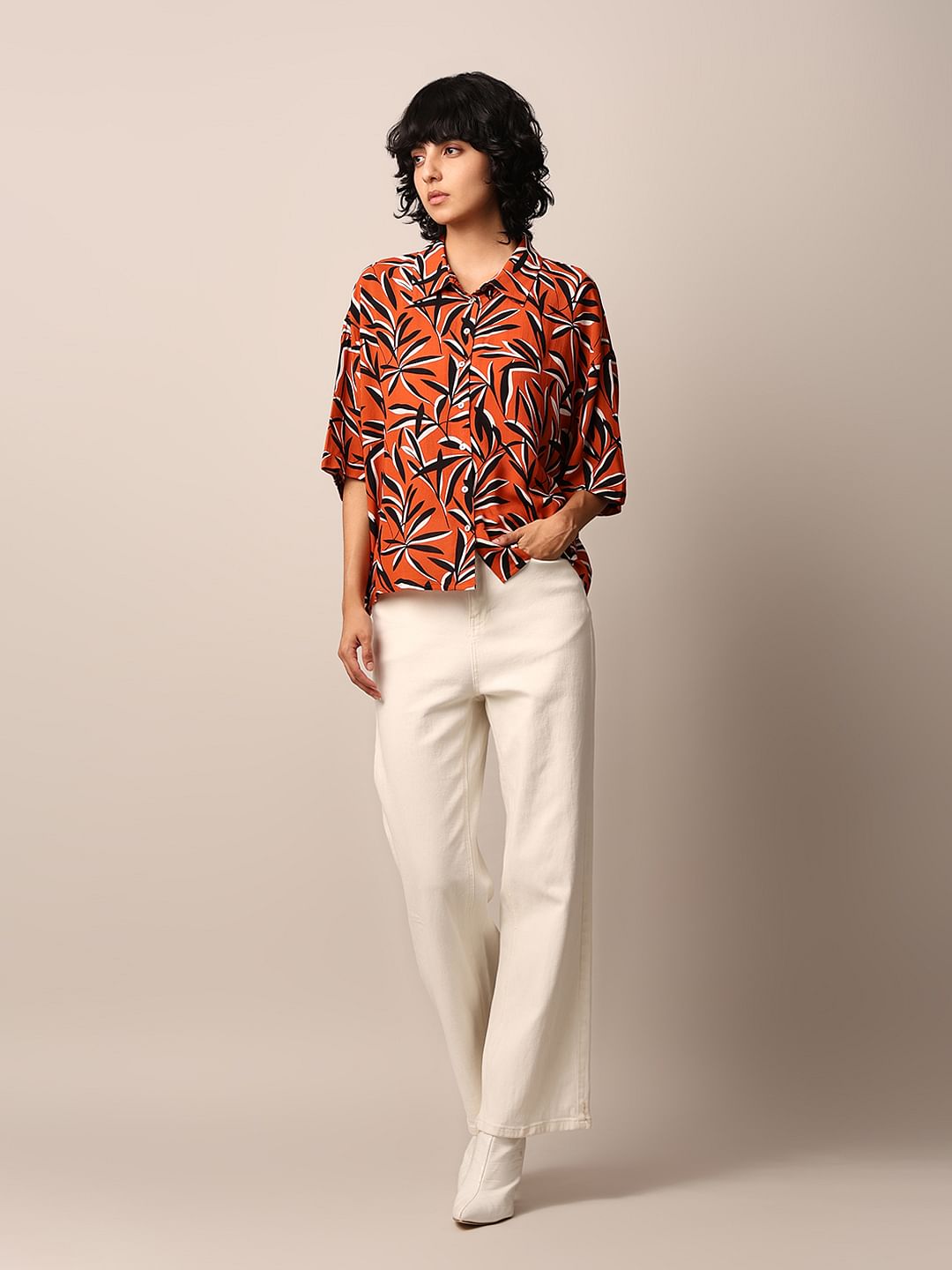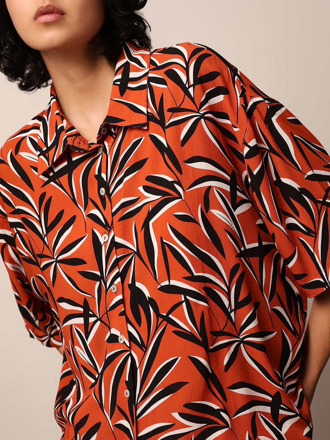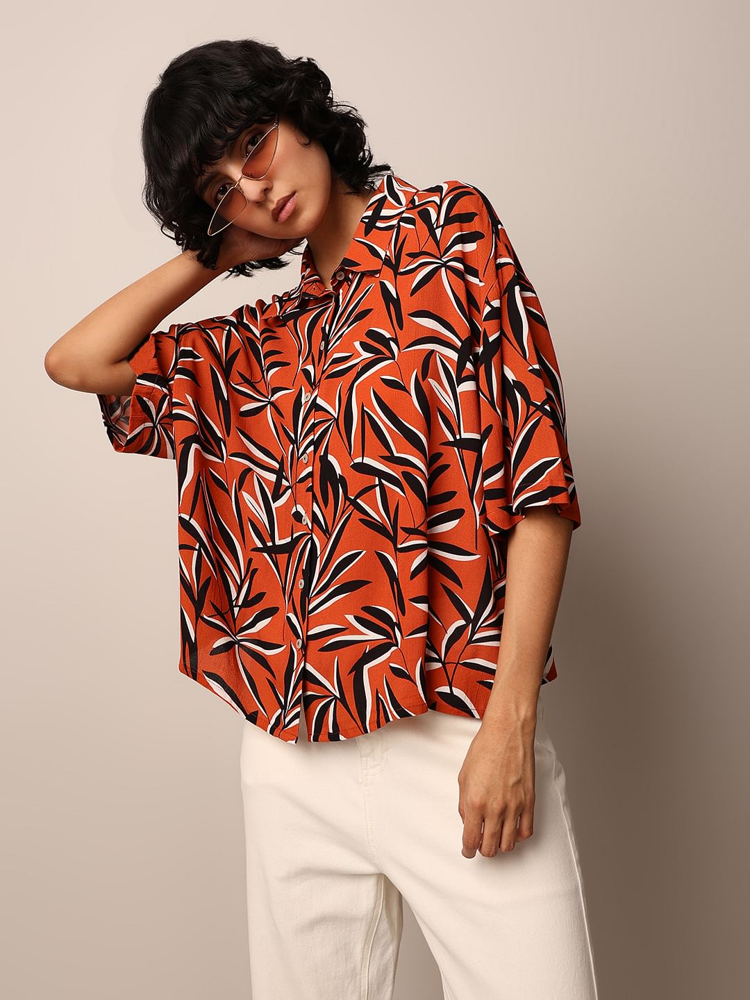 Orange Printed Crinkle Shirt