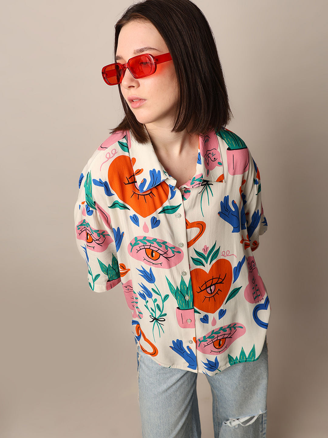 Introducing The Perfect Addition To Your Wardrobe - The Loose Fit Shirt By Only. This Shirt Is A Must-Have For Any Fashion-Forward Individual, Featuring A Stunning All Over Printed Viscose Fabric That Is Both Lightweight And Comfortable. The Shirt Also Boasts A Classic Collar And Buttons Down The Front, Exuding Timeless Elegance. The Dropped Shoulders And Short Sleeves Add A Touch Of Effortless Style, While The Rounded Hem Creates A Flattering Silhouette. This Versatile Shirt Can Be Dressed Up Or Down For Any Occasion. For A Chic Daytime Look, Pair It With High-Waisted Jeans And Sandals. Take It From Day To Night By Tucking It Into A Pencil Skirt And Adding Heels!