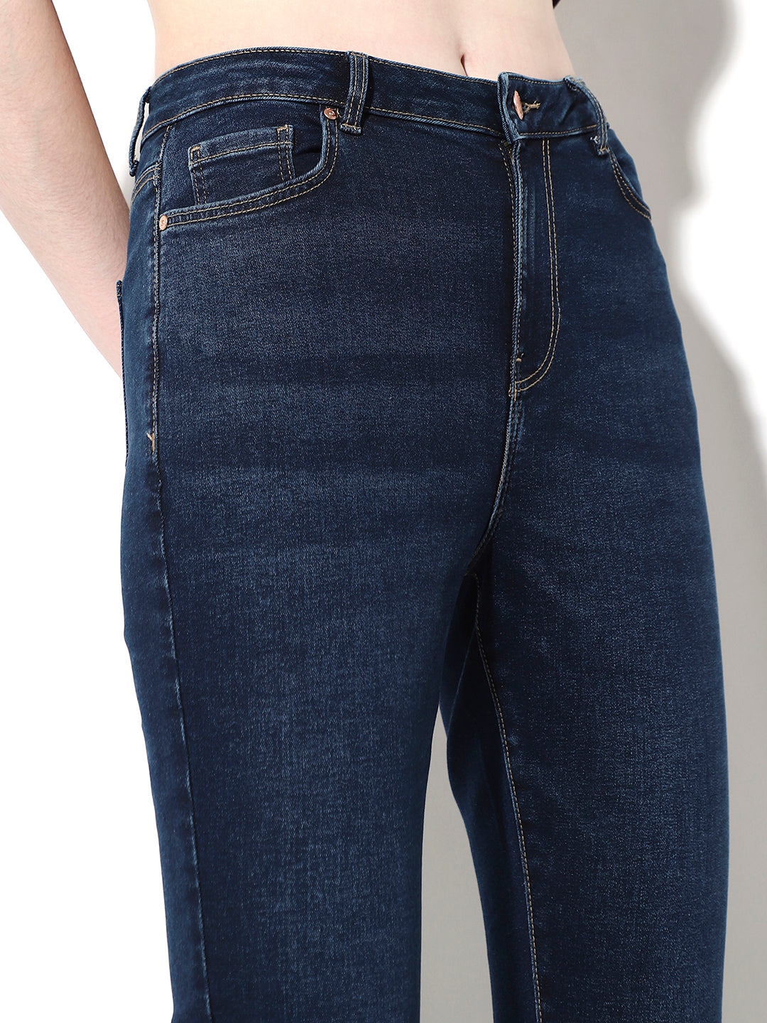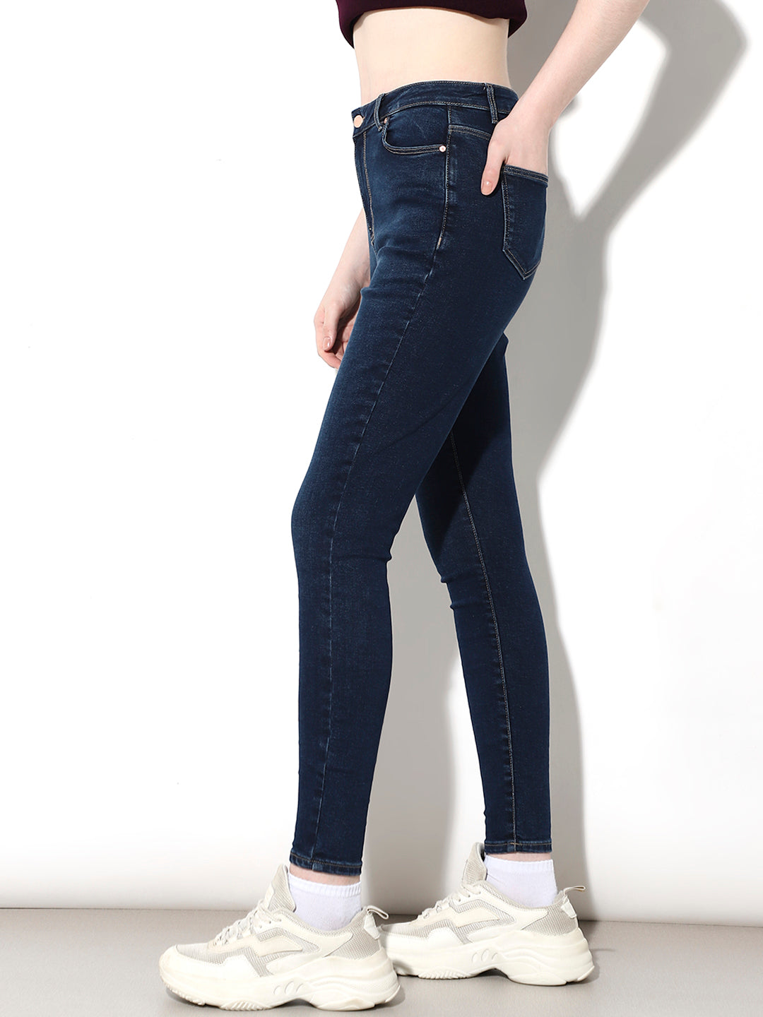 Your everyday fave, now with extra edge. These dark blue high-rise skinny jeans are crafted from slightly stretchy denim for that snug-but-comfy fit. Finished with real pockets (yes, even the coin one!) and a sleek zip fly—just zip, button, and slay.