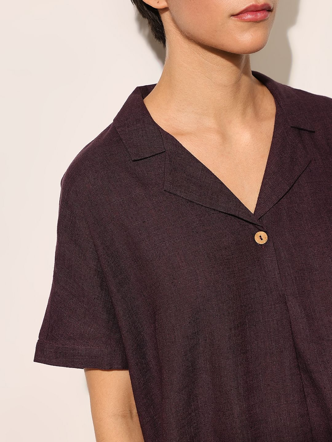 Easy, Breezy, And Effortlessly Cool! This Loose-Fit Linen-Blend Shirt Is Your Go-To For Laid-Back Days. Featuring A Classic Collar, Short Sleeves, And A Single Button Front, It&Rsquo;S All About That Effortless Vibe. Dress It Up Or Keep It Casual&Mdash;Either Way, You&Rsquo;Ll Be Serving Looks!