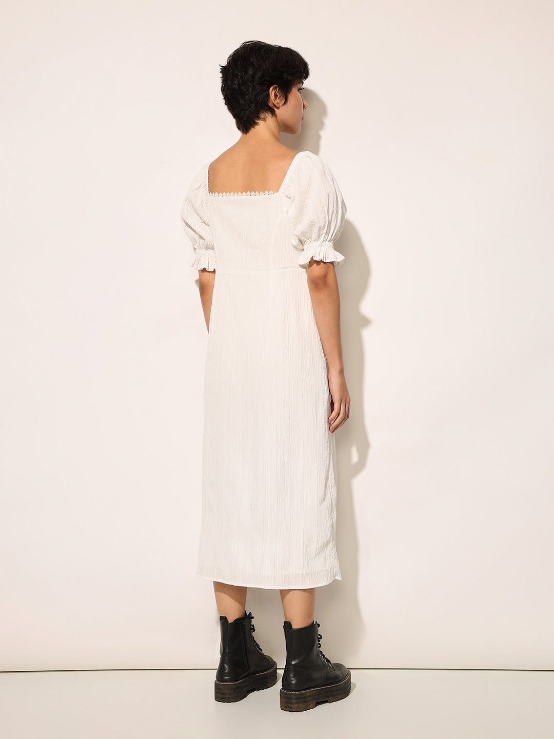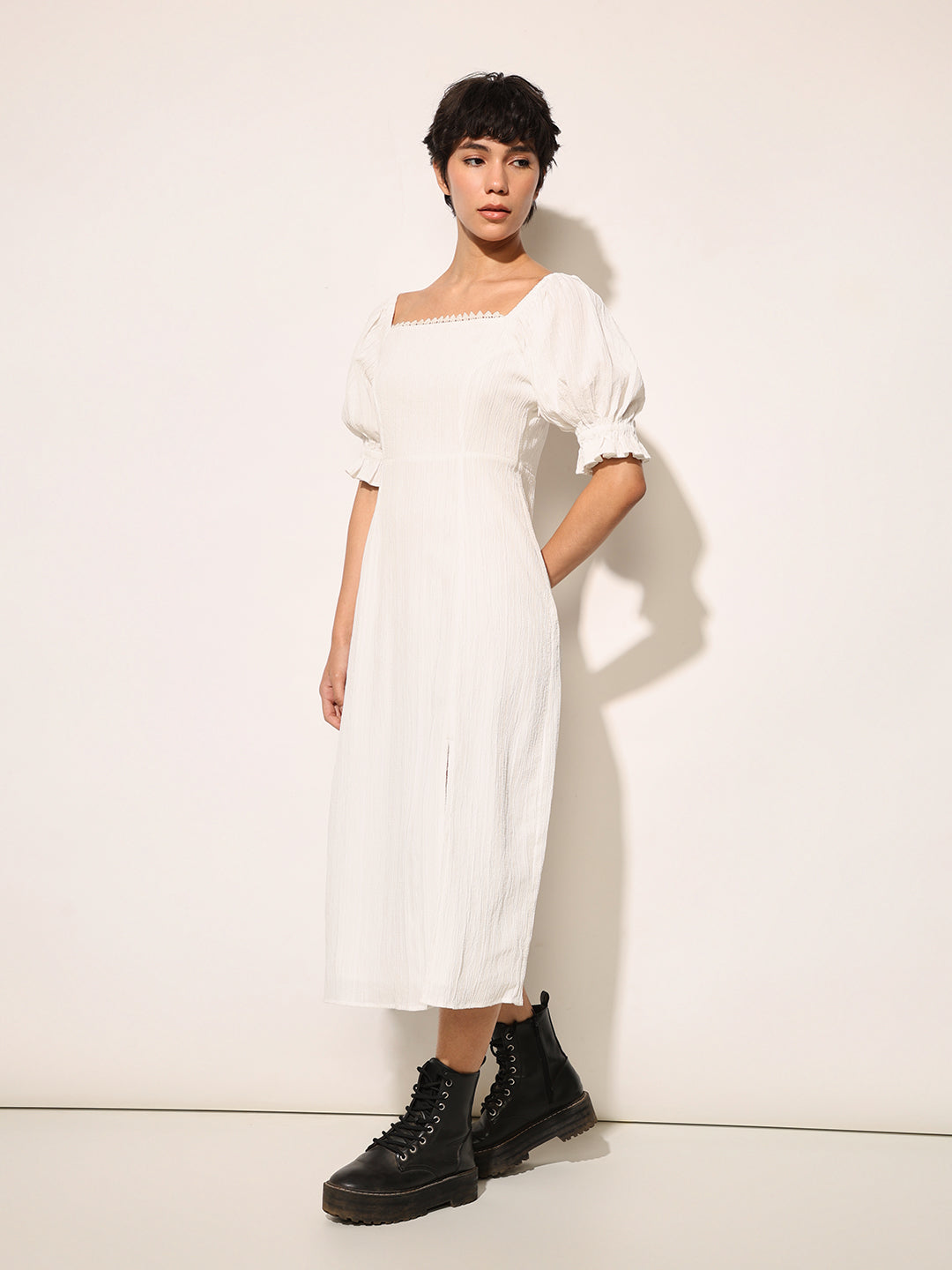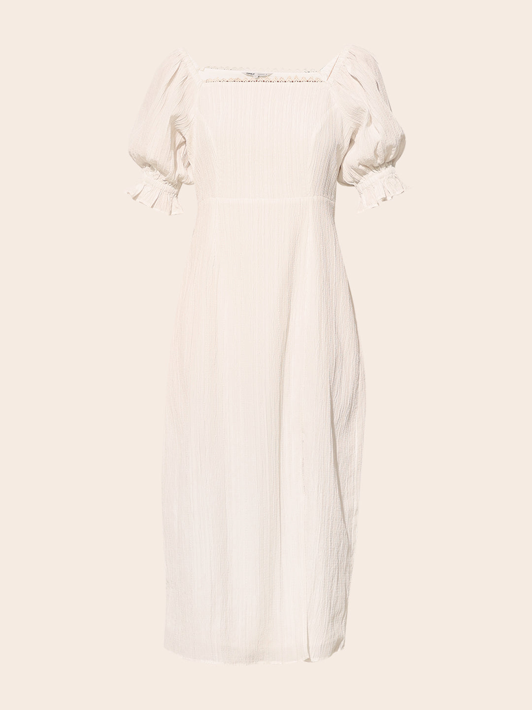 This chic white off-shoulder dress from ONLY exudes effortless elegance with its calf-length silhouette and flattering slit detail. Perfect for sunny days and warm evenings, it’s the ultimate summer statement piece for a stylish, laid-back look. Whether you're out for brunch or a beachside stroll, this dress combines fun and sophistication in one.