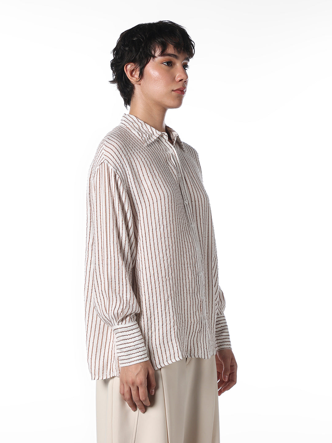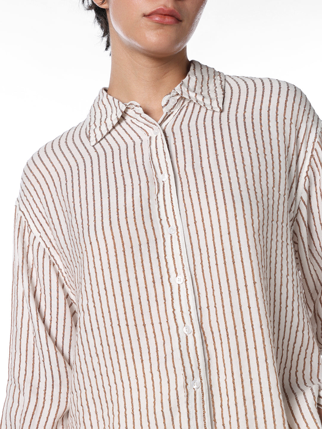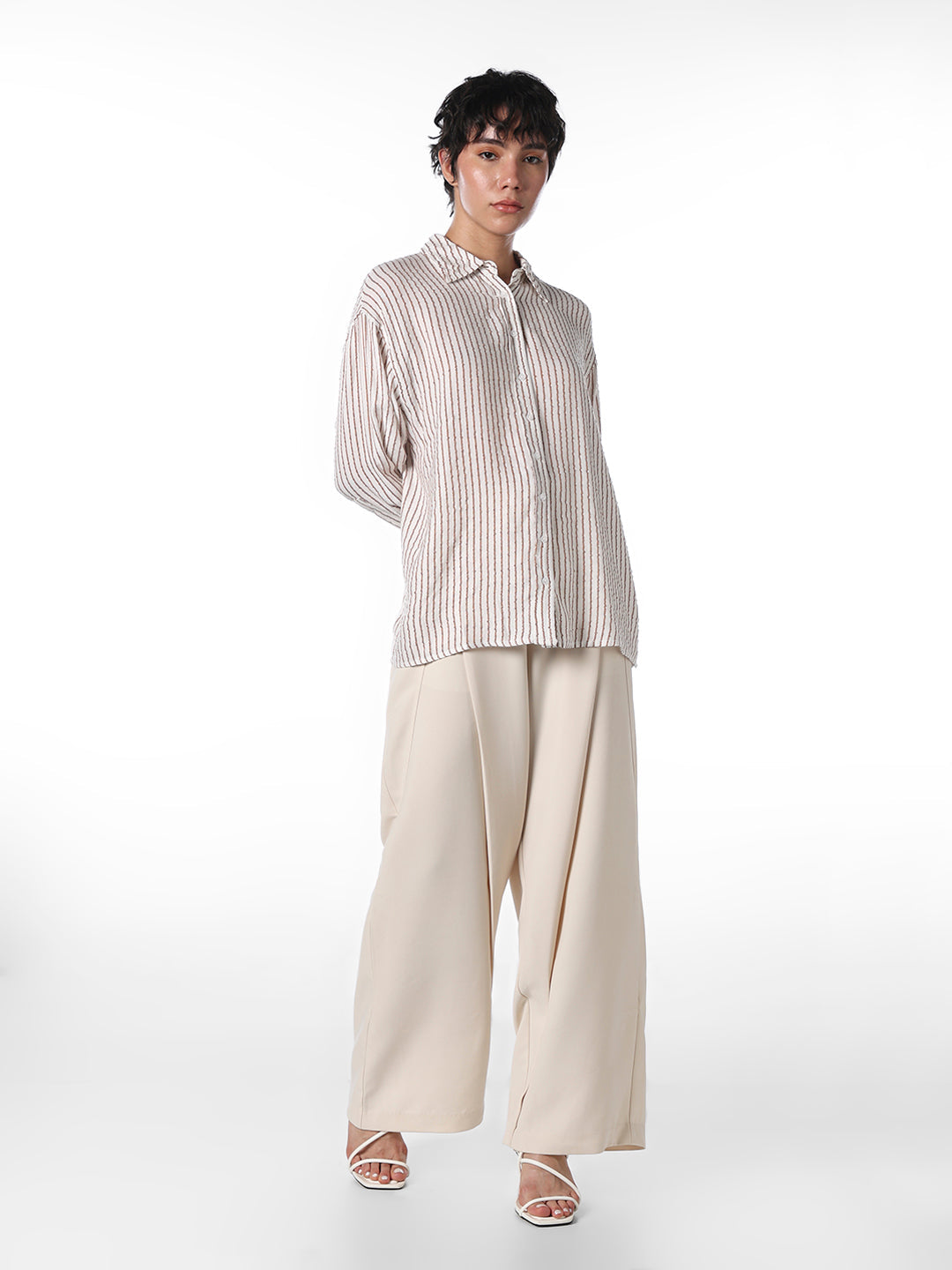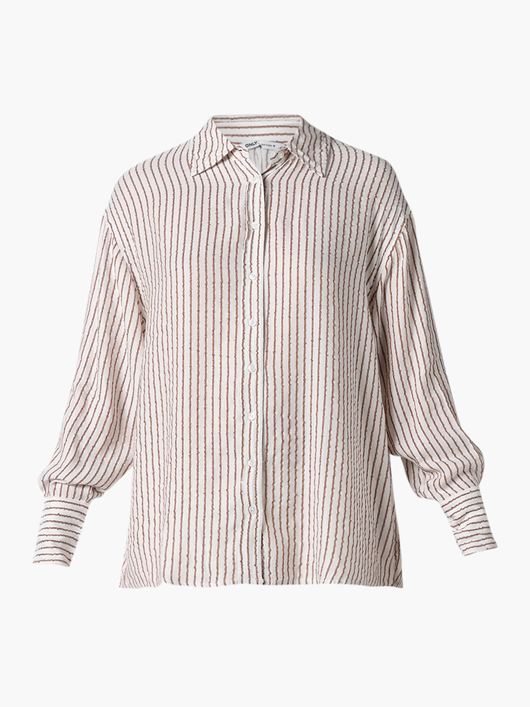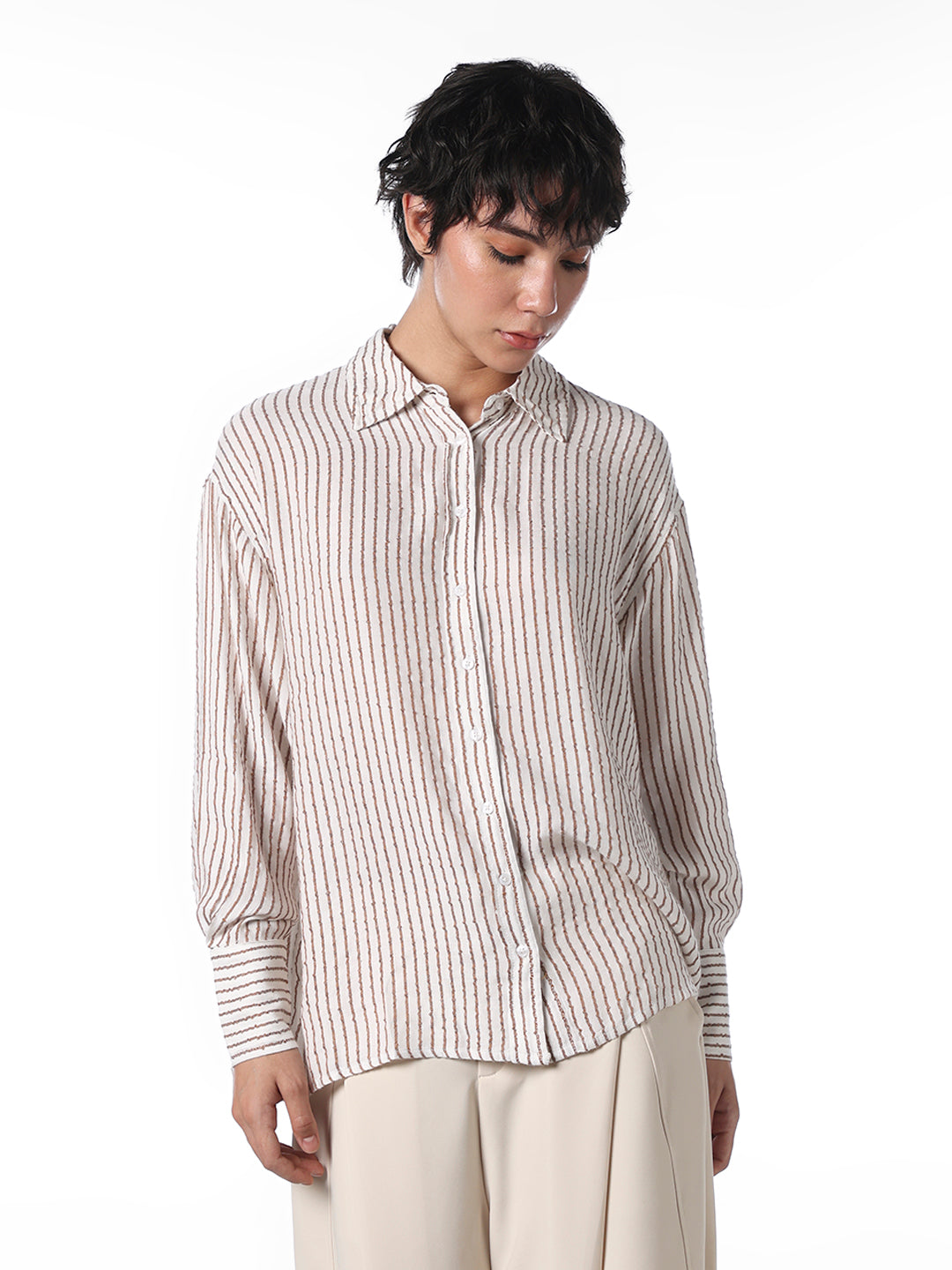 A crisp classic with a twist. This white striped shirt is crafted in soft, lightly crinkled cotton for that effortless ‘just-threw-it-on’ vibe. Finished with a turn-down collar, buttoned cuffs, and a relaxed regular fit that goes from work mode to weekend chill in no time.