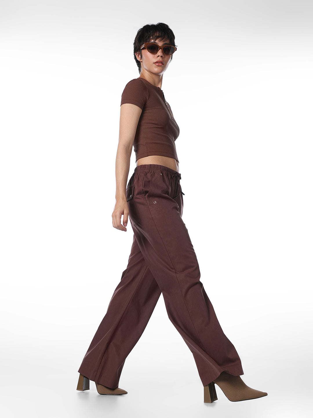 Level up your street style with these brown pants. Featuring a comfy smocked waist with drawstrings, wide-leg fit, and flap + side pockets for that off-duty cool.